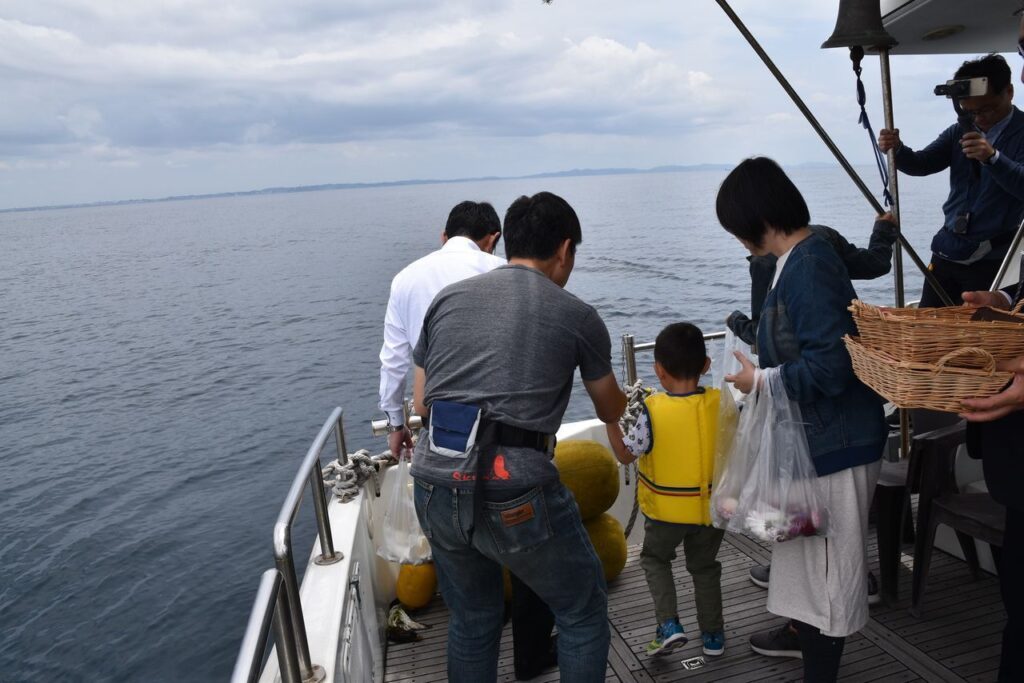 皆さん手際よく粉末化された遺灰や花、飲み物をまいて最後の別れを惜しんでいた。