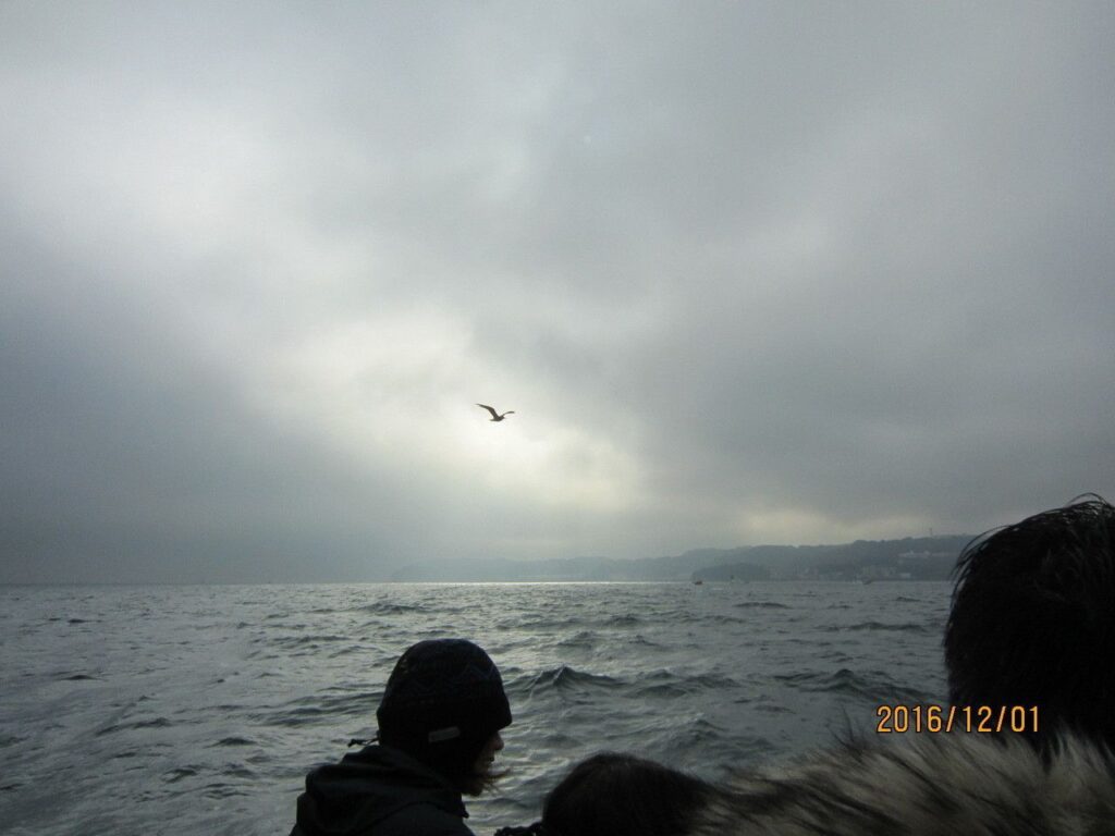 風が強く船が揺れ酔う人も出てきた。奥様のSさんが「ばちが当たったのかしら」冗談交じりに言うと、友人のKさんが「そんなことあるはずがないでしょう」とたしなめた。